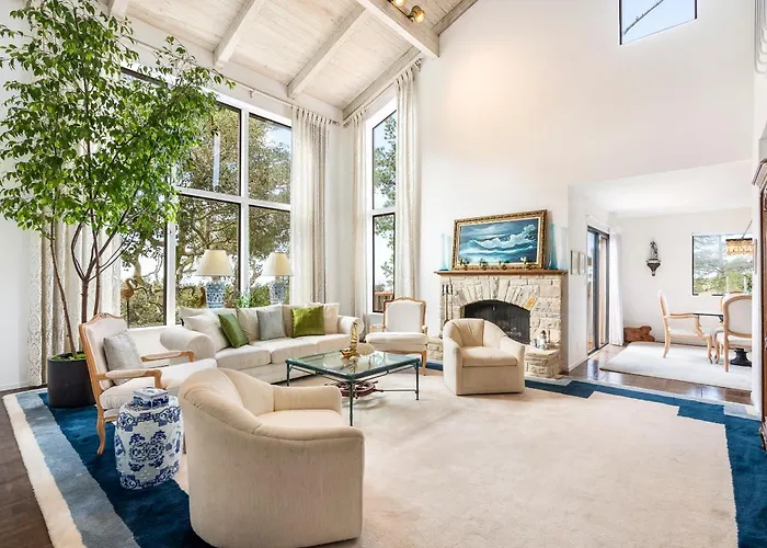 Gasten kunnen genieten van een kust uitzicht op de zee vanaf een patio in Heavenly Carmel - Stay For 10 villa, op ongeveer 4 km van de Fisherman's Wharf.